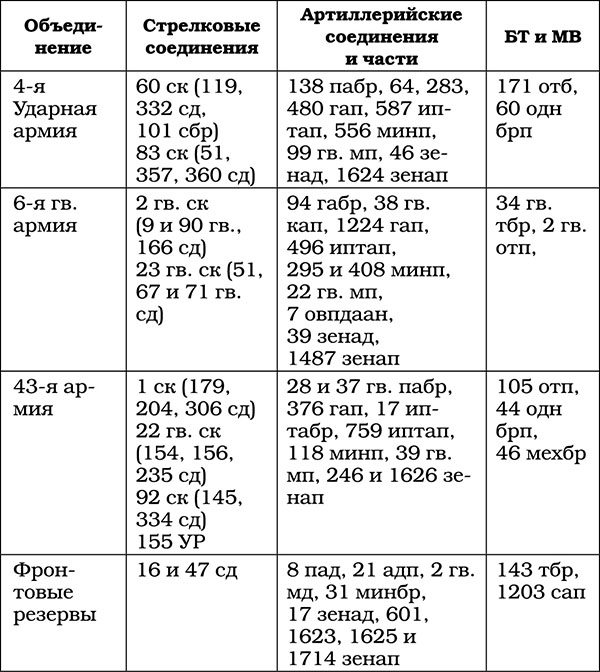 Руководству фронта было известно, что в их распоряжение к началу операции будет передан 1-й танковый корпус, другие воинские соединения и части.