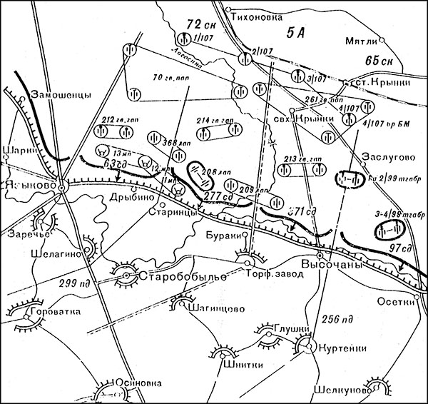 В районе Выдрицы, находясь в армейском резерве, дислоцировались танковый и железнодорожный батальоны, дивизион штурмовых орудий.