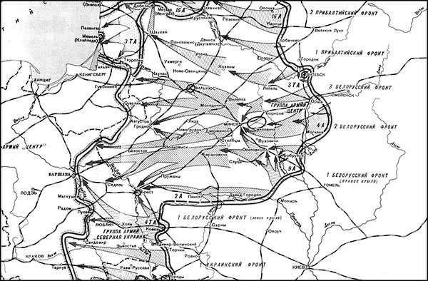 Затем, наращивая удар и расширяя фронт наступления, войска Белорусских фронтов должны были выйти к западным границам Советского Союза.