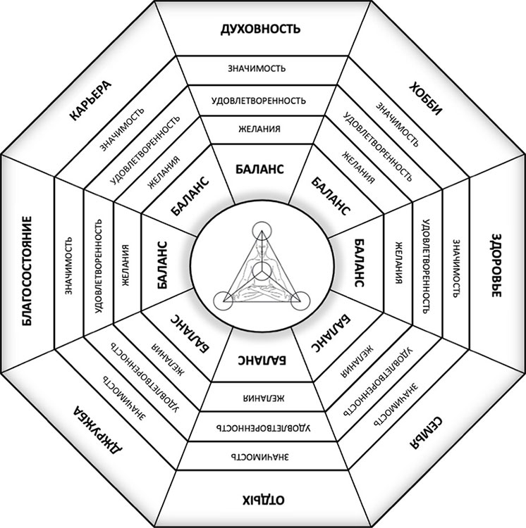 Хаос разума имеет свои последствия: положительные несут положительную энергию в окружающую среду и образ жизни, а отрицательные привносят негатив и разрушают реальную жизнь. Иначе говоря, что излучаем, то и получаем. Визуально это можно представить, следующим образом: посмотрев на нашу «Карту Процветания» на рисунке № 1, представим, как мы наполняем ментальную карту соответствующими энергиями и заполняем все сферы нашей жизни, что приводит к гармонии или к краху. Наши энергии – это словно кровь в организме человека, а «Карта Процветания» и есть организм. От того, насколько чиста и качественна наша «кровь», зависит и работа организма, а значит, и жизнеспособность в целом.