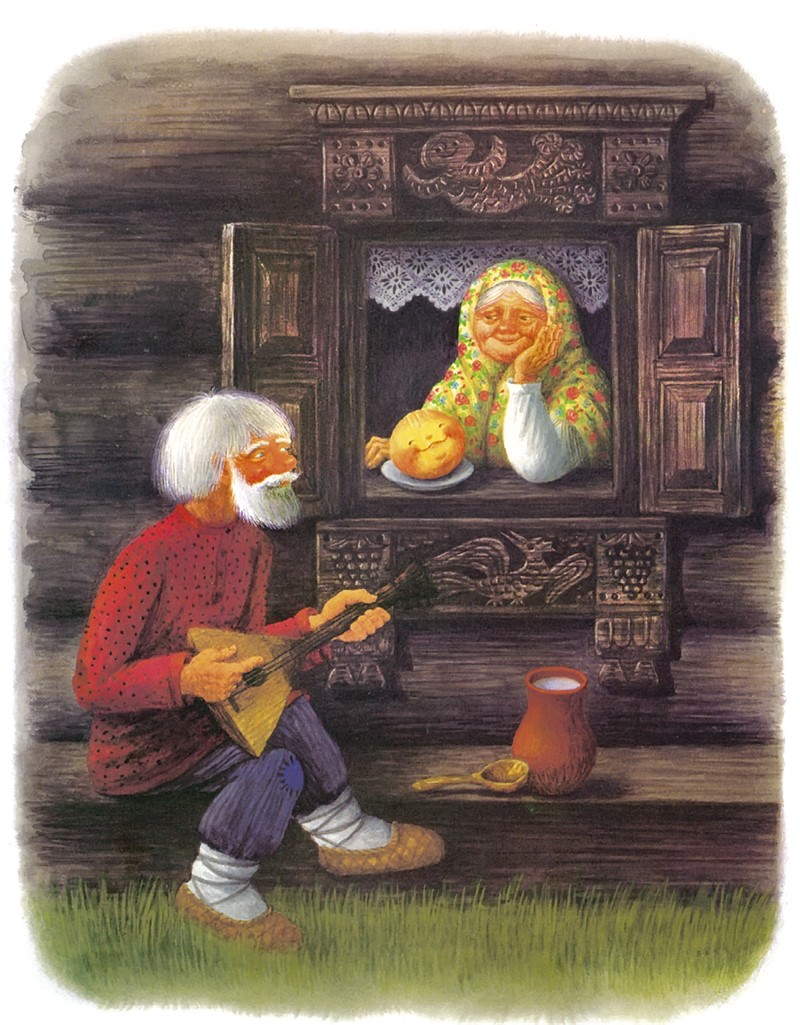 Старушка так и сделала: намела, наскребла горсти две муки, замесила тесто на сметане, скатала колобок, изжарила его в масле и положила на окно простынуть.
