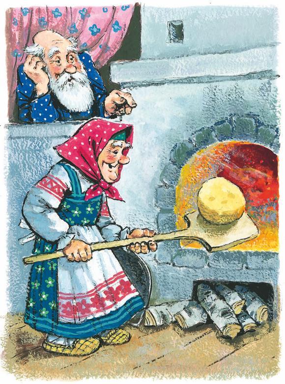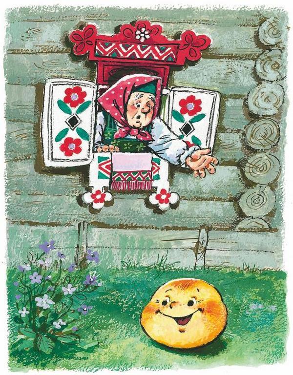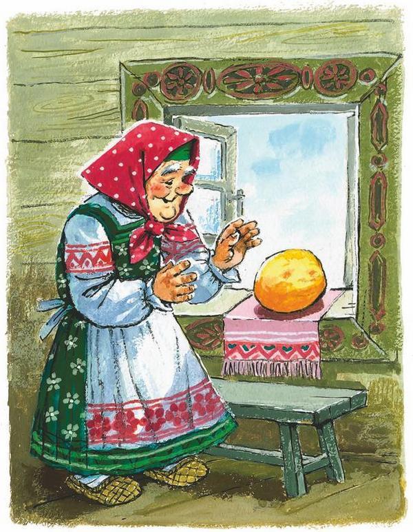 Старушка так и сделала: намела, наскребла горсти две муки, замесила тесто на сметане, скатала колобок, изжарила его в масле и положила на окно простынуть.