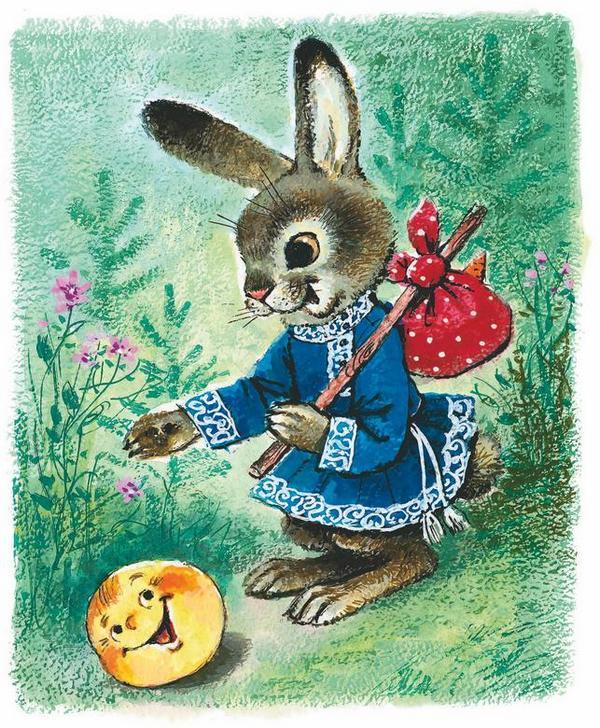 Я колобок, колобок!По амбару метён,По сусечкам скребён,На сметане мешён,В печку сажён,На окошке стужён.Я от дедушки ушёл,Я от бабушки ушёл.От тебя, зайца, не хитро уйти.