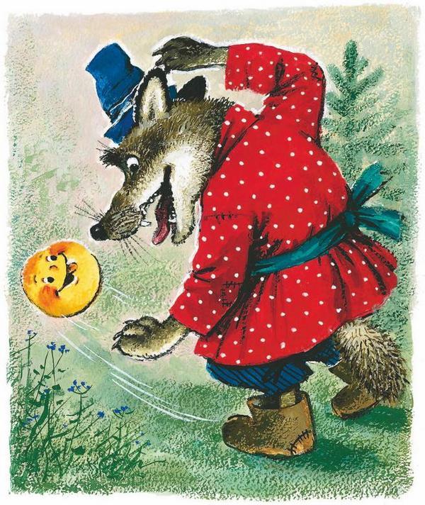 Катится колобок по тропинке в лесу, а навстречу ему серый волк: