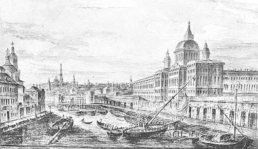 И. В. Мошков. Вид на Воспитательный дом от Москвы-реки. 1800-е. Фрагмент