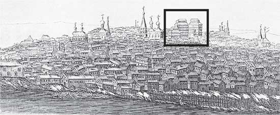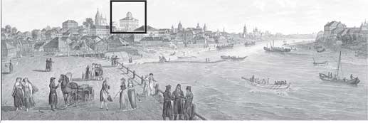 Палаты Строгановых в Заяузье на панораме Москвы П. Пикарта. 1707