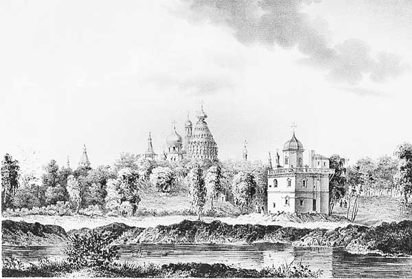 Вид Андроньева монастыря. Гравюра А. Свешникова с оригинала Ф. Кампорези. Конец XVIII века