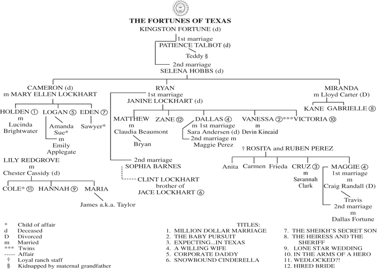 Despite a string of dead ends in the FBI investigation to recover his kidnapped grandson, Ryan Fortune, head of the Texas Fortune empire, has sworn that round-the-clock search efforts will continue. And if a national baby hunt isn’t enough to keep a mogul up nights, his soon-to-be ex-wife, Sophia, is playing pinch-’n’-spit in divorce negotiations—and holding out for the farm, or in the Fortunes’ case, the whole dang ranch.
