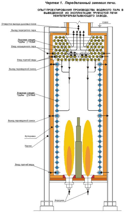 ОПЫТ ПРОЕКТИРОВАНИЯ ПРОИЗВОДСТВА ВОДЯНОГО ПАРА В ВЫВЕДЕННОЙ ИЗ ЭКСПЛУАТАЦИИ ТРУБЧАТОЙ ПЕЧИ НЕФТЕПЕРЕРАБАТЫВАЮЩЕГО ЗАВОДА.