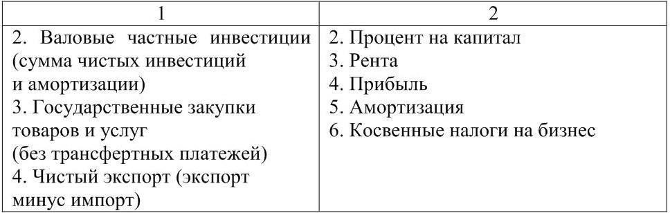 Следующие два метода расчета ВВП по статьям расходов и источникам доходов.