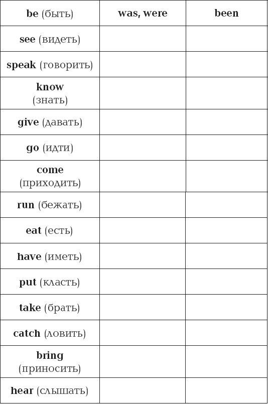 8. Заполните таблицу формами неправильных глаголов: