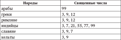 Древние цивилизации для работы с числовой энергией пользовались различными магическими системами чисел. Чаще других священными числами назывались следующие: 3, 4, 5, 7, 9, 10, 12, 40, 70 и 100. Далее приводятся сакральные числа в культурах разных народов: