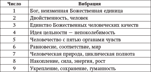 С незапамятных времен число 7 считается таинственным, связанным с духовной стороной вещей, а число 9 – с концом, завершением последовательности, на которой основаны все наши материальные расчеты. За числом 9 все другие числа являются просто повторением первых девяти. Например, 10 = 1 + 0 = 1, 11 = 1 + 1 = 2 и так далее.