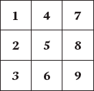 Когда числа представлены точками, становится очевидным, что нечетные числа являются мужскими, а четные – женскими. 3, 5, 7 и 9 представлены следующим образом: