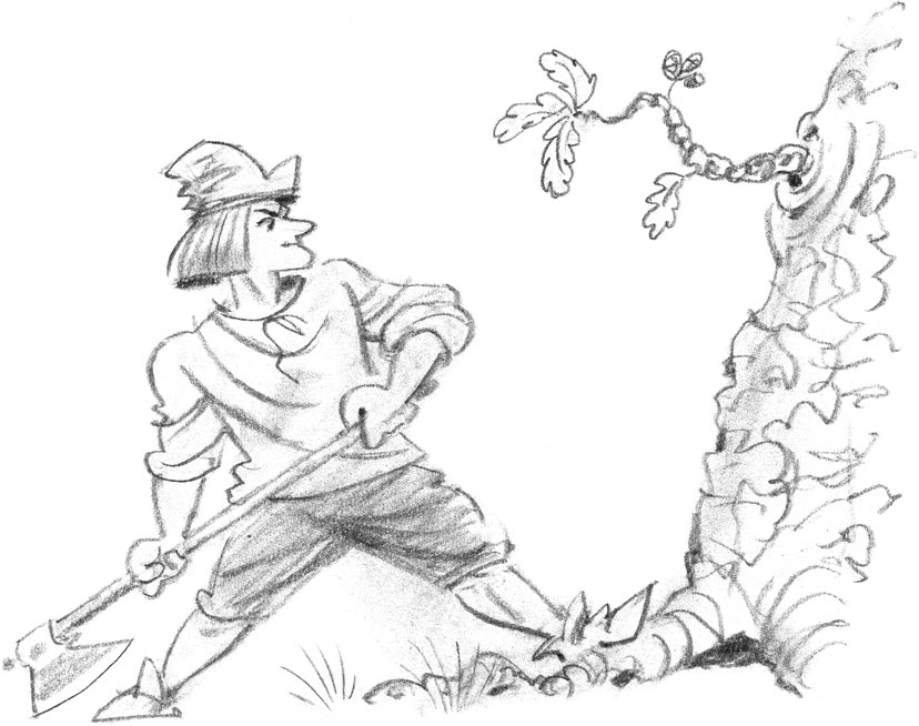 “Why are you working so hard, and all for nothing?[2] Listen to me. Go straight on for two days until you come to a great oak. This oak stands by itself[3] and is higher than all the other trees. Fell it, and your fortune is made.[4]” And she disappeared as suddenly as she appeared.