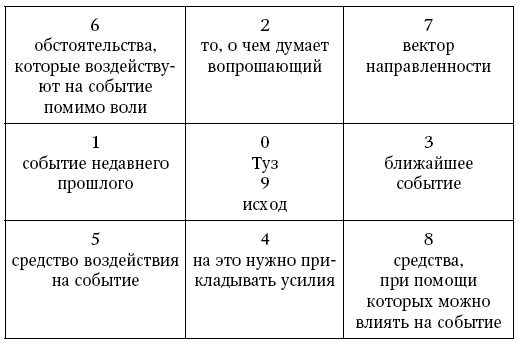 Под картой с номером 0 в центре подразумевается указанный выше Туз (кубков или мечей).