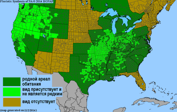Ареал распространения видов рода Камассия в США. Kartesz, J.T., The Biota of North America Program (BONAP). 2015. Taxonomic Data Center. (http://www.bonap.net/tdc). Chapel Hill, N.C.