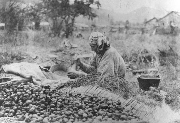 Анна Желтая Медведица из племени нес-персе перебирает клубни камасса. Айдахо, 1890 г. Photo courtesy of Nez Perce National Historical Park, Stephen D. Shawley Collection.