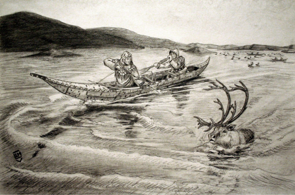Охота на карибу атапасков верхнего Юкона (Рис. Н. С. Шишелова).