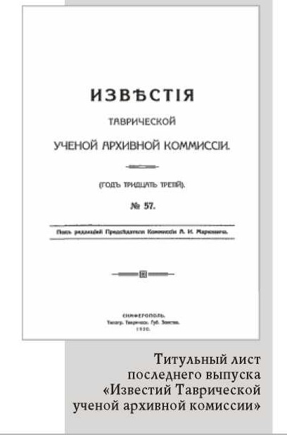 …В течение почти полувека (1887–1931) вопросы истории Крыма, этнографии его народов, охраны и использования многочисленных и разнообразных памятников истории и культуры энергично разрабатывались старейшей и авторитетнейшей в