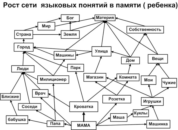 Новая совокупность ассоциативно связанных смыслов образует Мир Природы, Человека, его потребностей и навыков, действий. А связи ассоциативно возникают при обучении ребенка. Но суть модели – это её универсальность и запись в отрыве от конкретики текущего момента и текущей потребности. Более того, как правило, для использования этой памяти и такой модели требуется также время на представление в памяти этой связи как порядка действий – алгоритма.