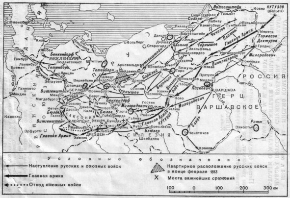 В начале января по старому стилю – середине января 1813 г. по новому стилю и Главная российская армия перешла в общее наступление по трем направлениям: на Кенигсберг, Варшаву и Плоцк. Главным было Кёнигсбергское направление.
