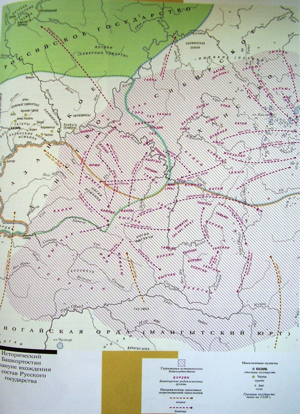– «Ясак поплатили» – для того, чтобы его собрать и привезти за 500—700 км, надо иметь соглашение и знать размеры. То есть приходили посланцы племен байляр, буляр, юрми, гарей, гайнэ, мин, уран, ирыхты, кара-табын, танып, бурзян, усерган, кыпсак, тамьян, например, которые уже приняли русское подданство в 1553—1556 году. При таком понимании родовые шежэрэ этих племен и официальная летопись русского государства перестают противоречить между собой.