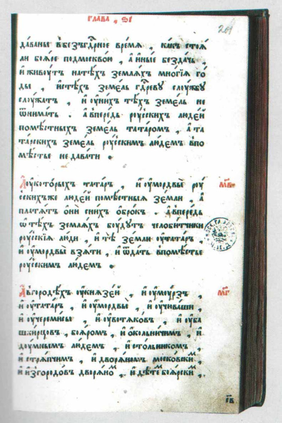Глава VIII Соборного Уложения Царя Алексея Михайловича с запрещением. 1649 г. РГАДА. Библ. СПК. №48. Л.1