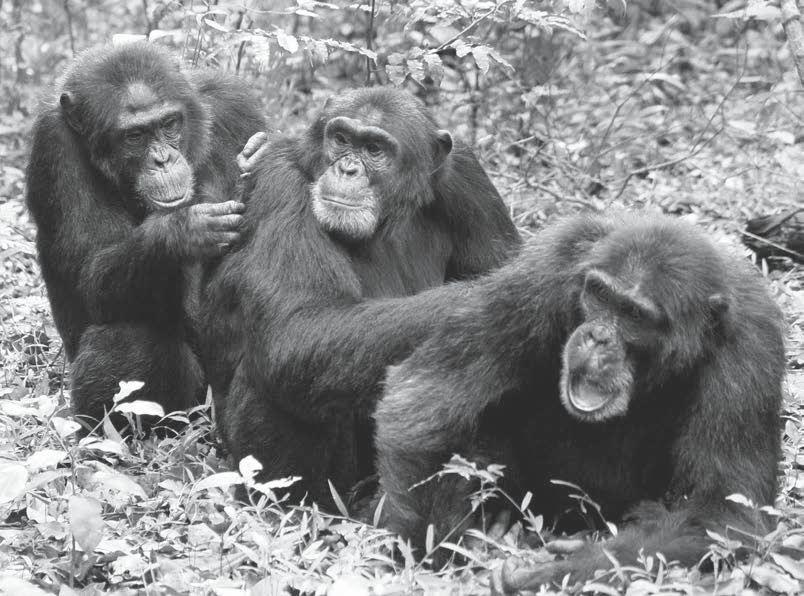 Например, Робин Данбар сообщает, что бабуины гелады, живущие в высокогорьях Эфиопии, проводят до двадцати процентов времени в уходе за своими кожей и мехом (груминг). Это огромные затраты времени на заботу о себе. Хотя уход за шерстью полезен для удаления мертвой кожи, паразитов, спутанных волосков и кусочков растительного материала, время, которое бабуины гелада (и многие другие виды приматов) посвящают этой задаче, далеко не пропорционально пользе для здоровья от чистой кожи и меха. Основная причина такого внимательного ухода за собой социальная, а не дерматологическая (рисунок 1.3).