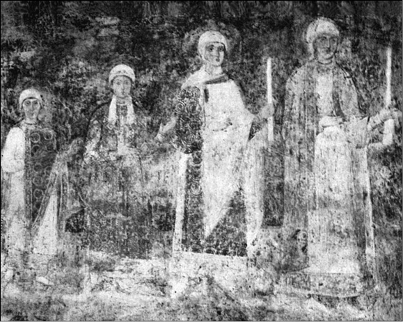 Жена и дочери Ярослава Мудрого. Фреска центрального нефа Софийского собора в Киеве
