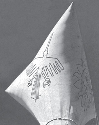 Ведь по замыслу экспериментаторов, аэростат должен был стать точной копией конструкции, изображение которой было обнаружено на стене одной из гробниц Наски, построенной более 2000 лет тому назад. Именно этим и объясняется его странная форма – тетраэдр-четырехгранник имел высоту 10 м и сторону основания около 30 м. Сделан он был из материала, схожего с тканью, образцы которой опять-таки были извлечены из древних захоронений. Наконец, гондола в форме лодки, была сплетена из тростника тоторы, которым и по сей день пользуются обитатели озера Титикака – индейцы племени урос.