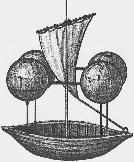 Впрочем, несколько полезных идей аэронавты у мореплавателей все же почерпнули. Например, известно: узкая лодка движется быстрее широкой при одинаковых усилиях гребцов. Оболочки аэростатов тоже стали делать вытянутыми, сигарообразной формы.