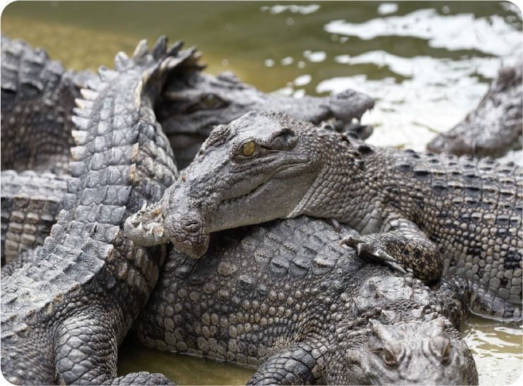 Как полагается рептилиям, они возлежали неподвижно группами, друг на друге, поодиночке. Примерно в таких же позах располагались они на берегах Меконга, Ганга, Нила и многих других водоёмов, где встреча с ними вспенила бы адреналин в крови, добавила поводов к долгим вечерним рассказам на далекой Родине. Здесь, в вольерах над рукотворными бассейнами, изобилие страшных хищников не вселяло в нас должный трепет.