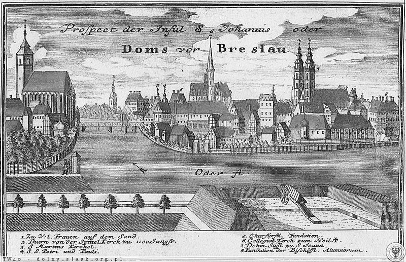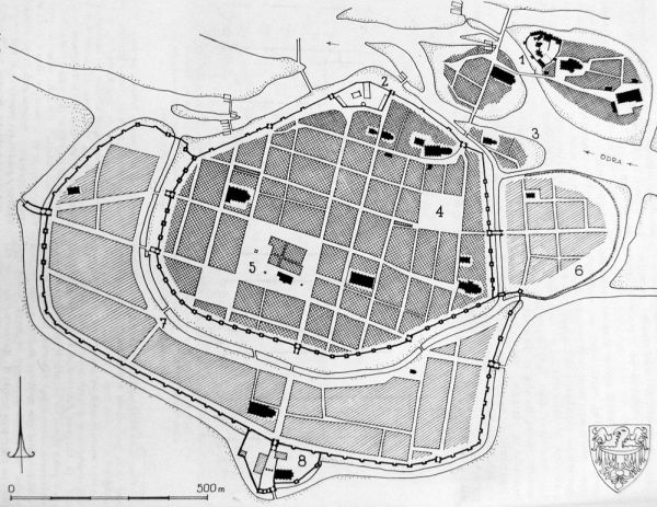 Ил. 3. Вроцлав. Центральная часть. Костелы. Источник: Małachowicz E. Stare Miasto we Wrocławiu. Warszawa, Wrocław, 1985