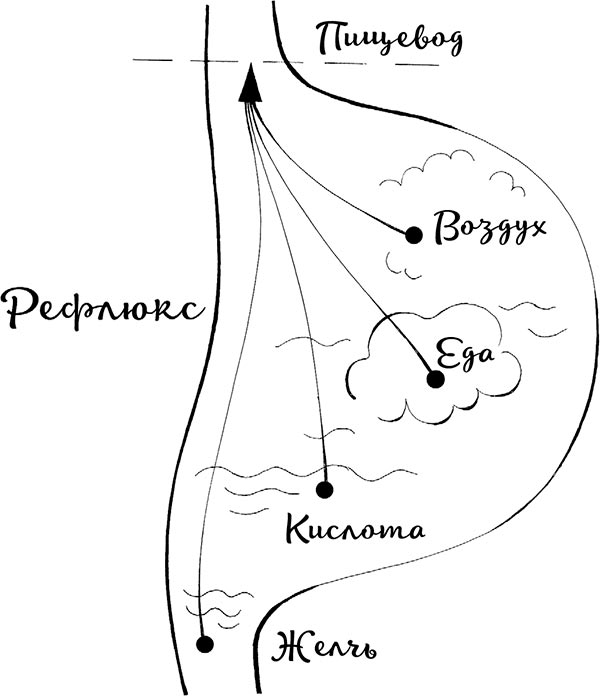 Рефлюксом, как мы уже знаем, называют забрасывание содержимого желудка вверх по пищеводу. Это происходит из-за того, что место между пищеводом и желудком (сфинктер) не сжимается. Этот участок пищевода должен сжиматься и сохранять давление, а давления нет, вот все и летит вверх.