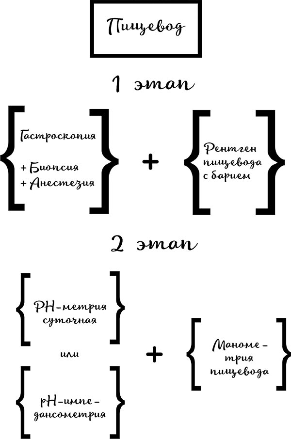 Рис. 9. Этапы и обследования для проверки пищевода