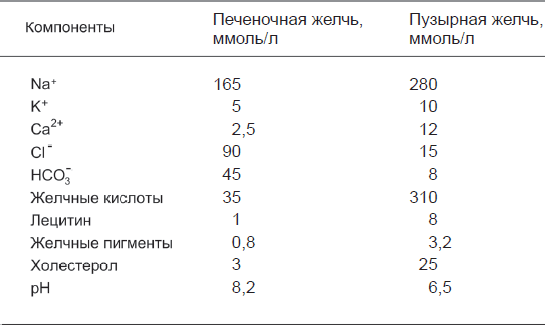 Состав печеночной и пузырной желчи