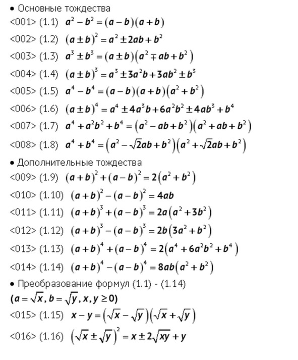 §1. Формулы сокращенного умножения и другие тождества, <001> – <028>