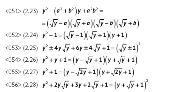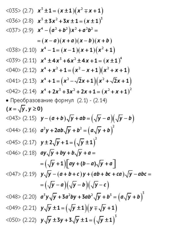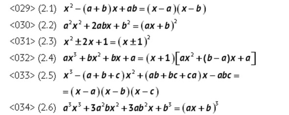 §2. Формулы разложения многочленов на множители, <029> – <056>