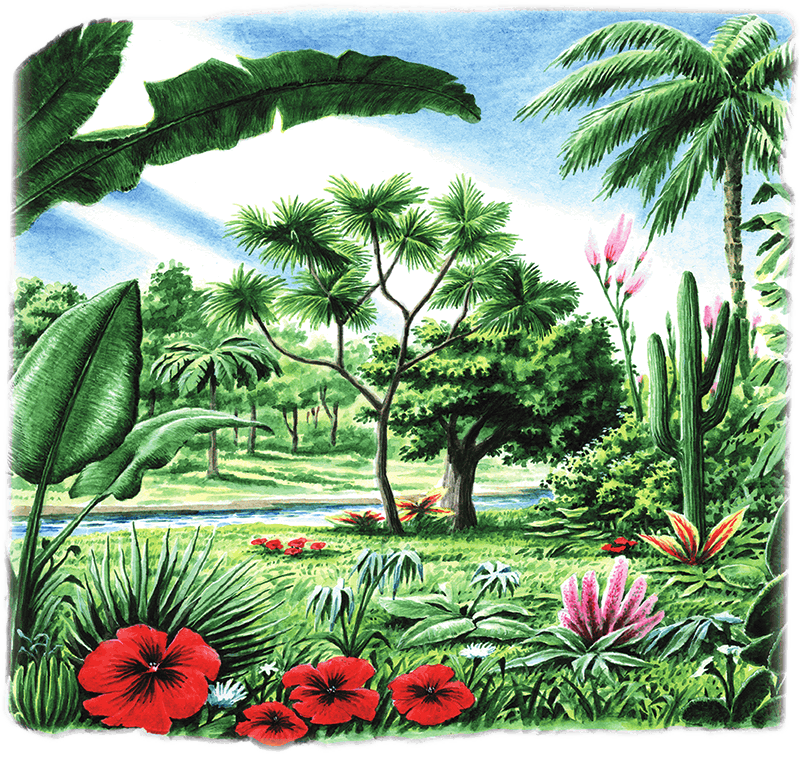 В Раю росли самые разные деревья: яблони и груши, персики и сливы, ананасы и бананы и много других – каких только душе угодно!