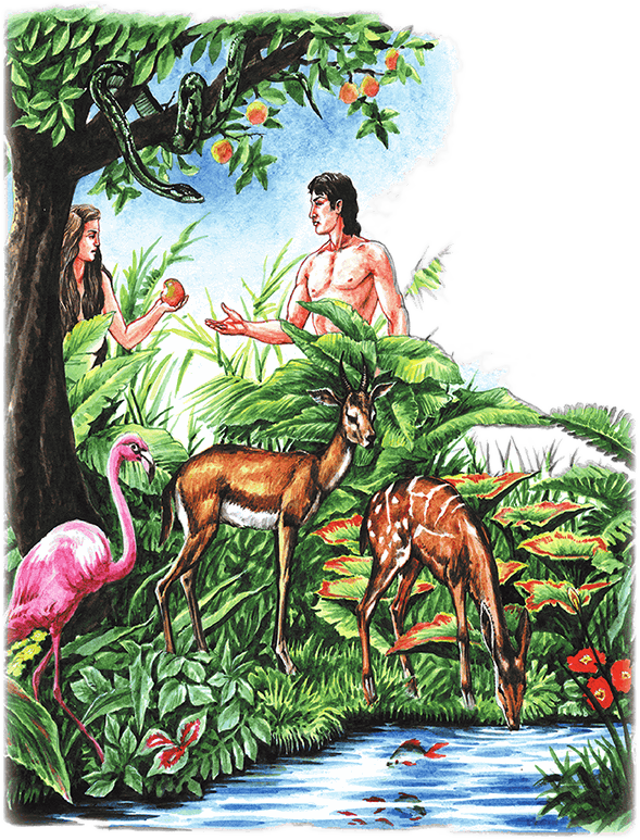Адам и Ева слушались Бога. Они были очень довольны своей жизнью, и ничто их не тревожило.