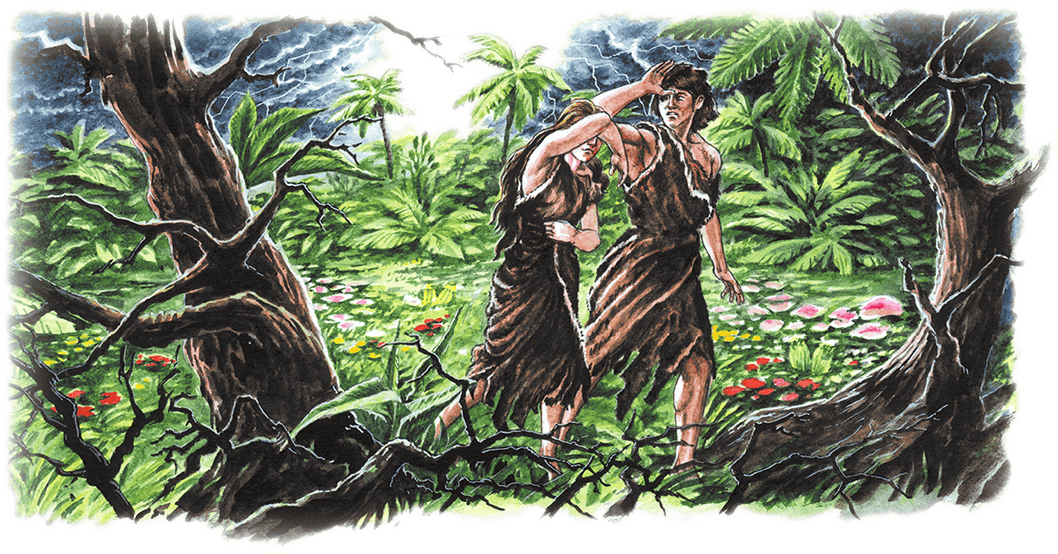 Наказал Бог Адама с Евой: одел их в звериные шкуры и выгнал из Рая. Теперь они тяжёлым трудом должны были добывать себе пищу и больше не вернулись обратно в Рай.