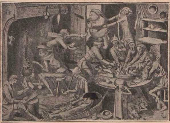 Рис. 8. На монастырской кухне. Из Библии XIV века.