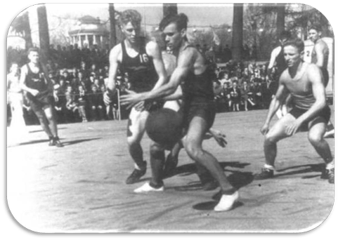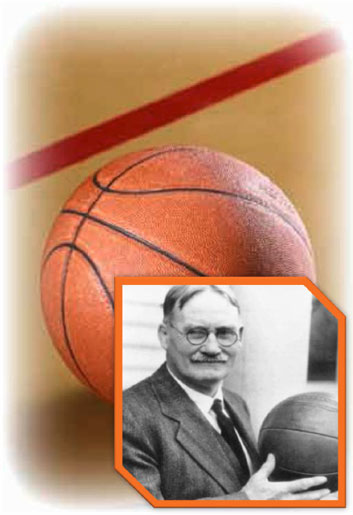 В декабре 1891 года он привязал две корзины из-под персиков к периллам балкона спортивного зала и, разделив студентов на две команды, предложил им игру, смысл которой сводился к тому, чтобы забросить большее количество мячей в корзину соперника. В 1893 году корзинки заменили железными кольцами с сеткой. В 1894 году в США были изданы первые официальные правила баскетбола.