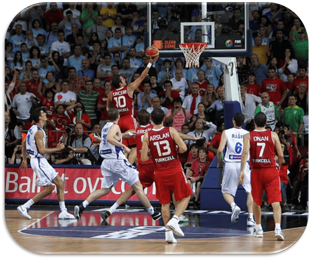 В баскетбол играют две команды, каждая из которых состоит из пяти игроков. Цель игры – забросить максимальное количество мячей в корзину соперника и помешать другой команде овладеть мячом и забросить его в корзину.