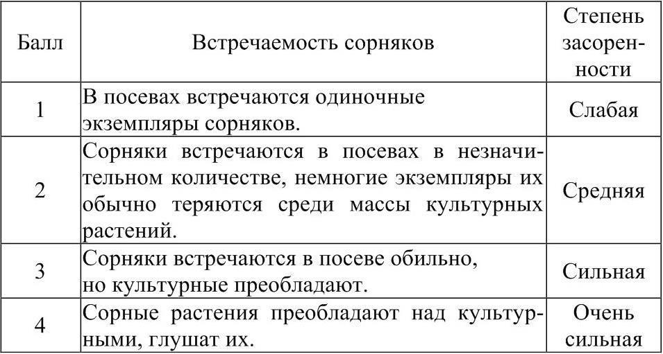 Таблица 1 – Шкала степеней засоренности посевов