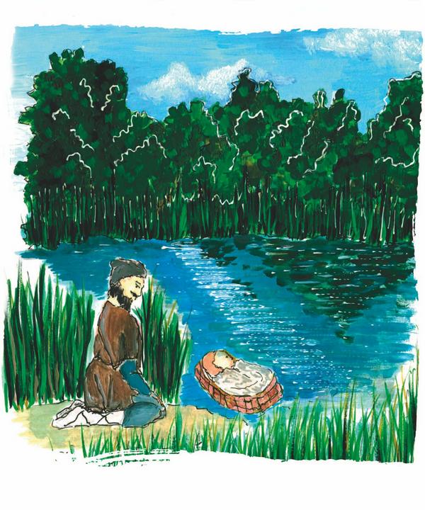 Пожалели гонцы чадо невинное, положили его в корзинку и пустили по речке. Воротившись к Купцу, слукавили, поклялись, что волю его исполнили…