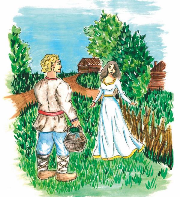 Полюбил он её с первого взгляда, и с тех пор сам возил свежую рыбу Купцу, чтобы вновь поглядеть на ту девушку, слово молвить ей. Не устояла красна девица перед взглядами да речами ласковыми. Стали они видеться тайком. А была эта девушка дочерью Купца единственной. Отец в ней души не чаял и ни в чём не отказывал.