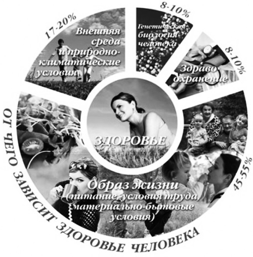 Здоровье – образ жизни, здравоохранение, генетика человека, внешняя среда (%)