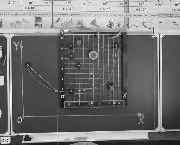 • иллюстрация основных понятий кинематики: системы отсчета, траектории перемещения, проекции вектора перемещения и их относительности;